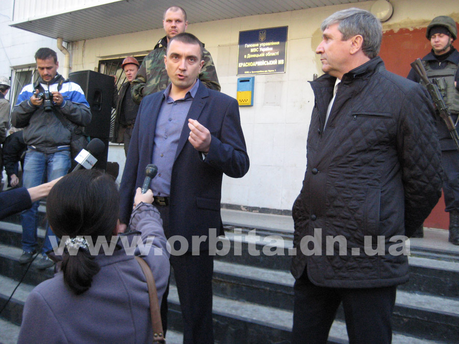 Сегодня несколько сотен работников ГП «УК «Краснолиманская» собрались под стенами Красноармейского горотдела милиции, в котором также располагается межрайонный отдел СБУ.