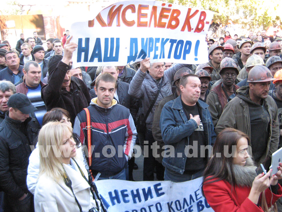 Шахтеры требовали вернуть их руководителя Константина Киселева – сегодня утром его увезли лица, которые представились сотрудниками Службы безопасности Украины.