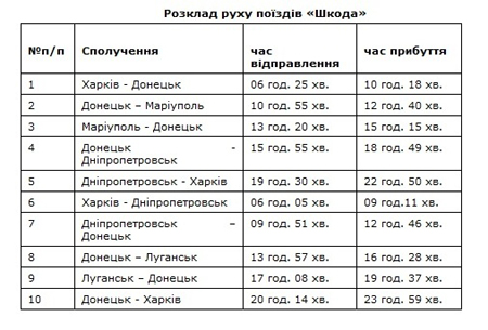 Электропоезда будут курсировать на направлениях: Харьков-Донецк, Донецк-Мариуполь, Донецк-Днепропетровск, Днепропетровск-Харьков, Харьков-Мариуполь, Донецк-Луганск.
