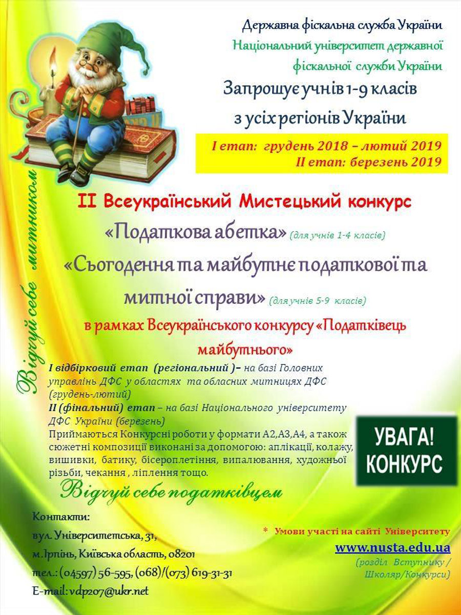 В рамках Всеукраїнського конкурсу «Податківець майбутнього» Національний університет державної фіскальної служби України оголошує ІІ Всеукраїнський Мистецький конкурс.