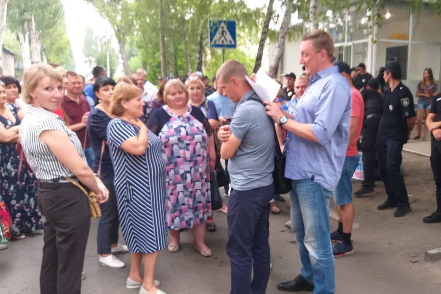 Под зданием окружкома продолжается митинг. Между сторонниками главных претендентов на победу в 50-м избирательном округе возникают словесные перепалки.