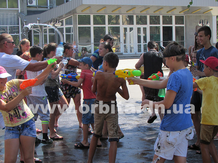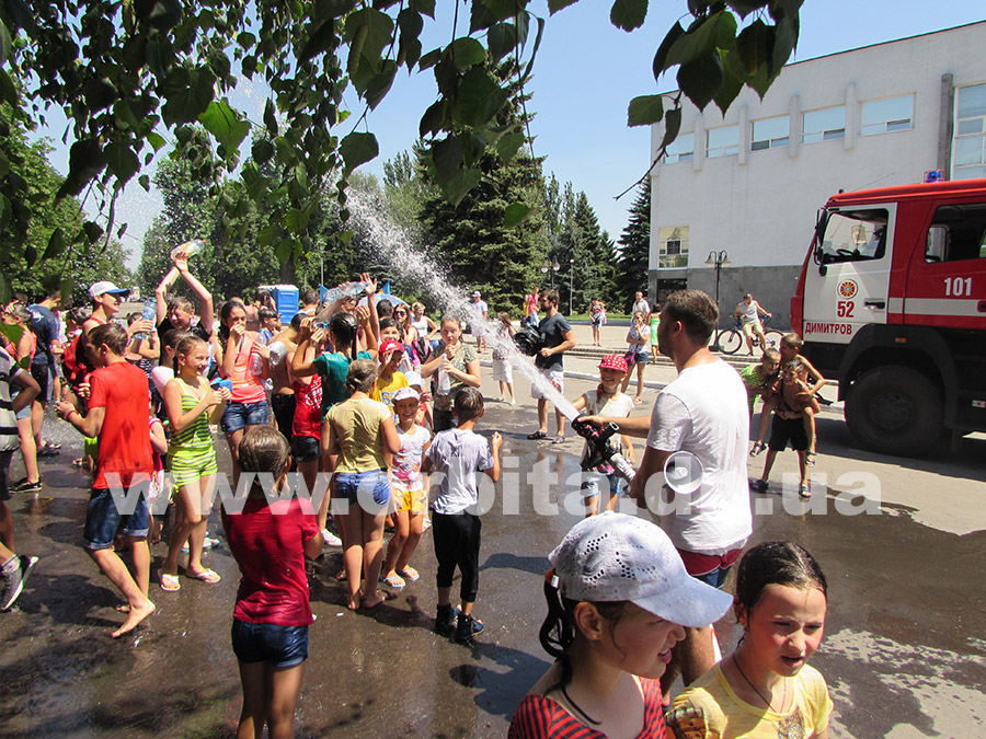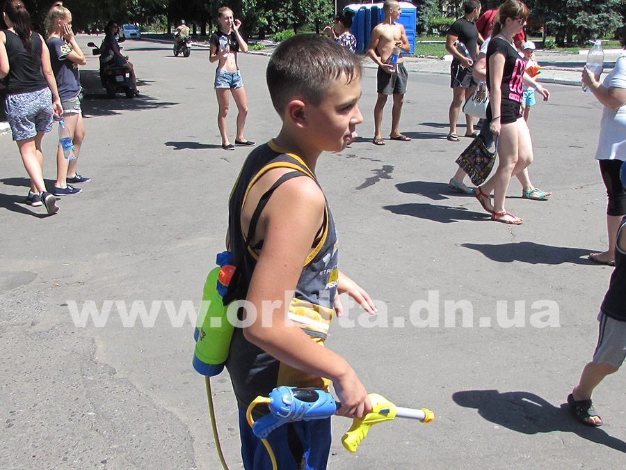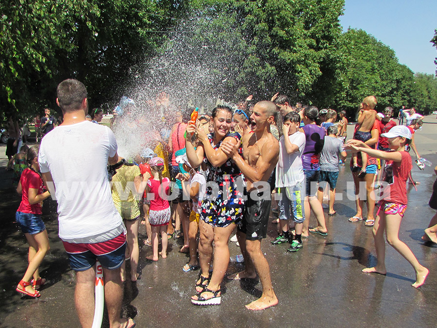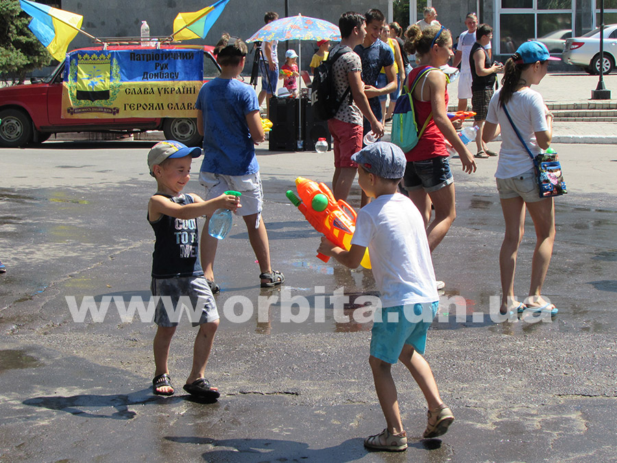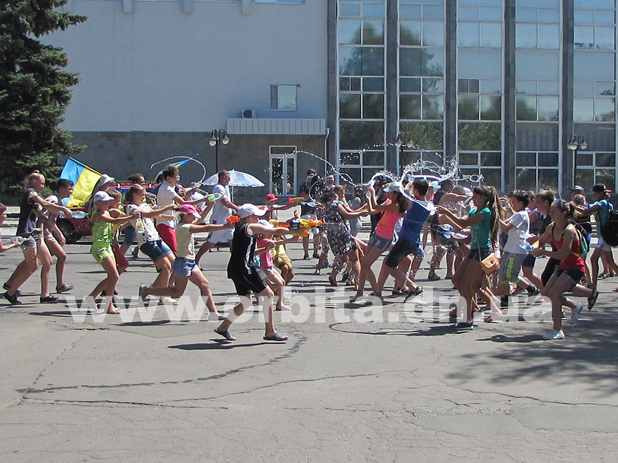 Сегодня, 16 июля, на центральной площади Покровска прошла настоящая водяная битва, организованная активистами «Українського Патріотичного Руху Донбасу» при участии спасателей ГПСО-9.