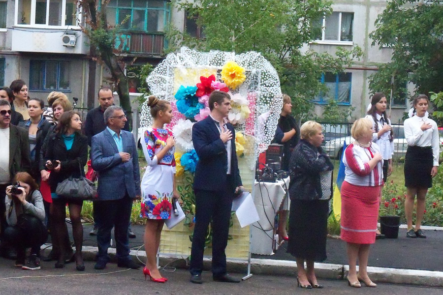 Поздравить школьников с началом учебного года пришли представители отдела образования Покровского городского совета и Покровско-Ясиноватского объединенного военного комиссариата, а также священнослужители местного храма.