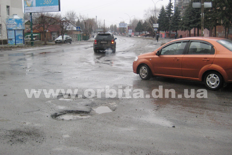 Каждую весну появляются выбоины практически на одних и тех же участках центральных улицах Покровска – Шоссейной (Артема), Центральной (Свердлова), Европейской (Горького), Владимирской (разделительной между микрорайонами «Южный» и «Шахтерский»).