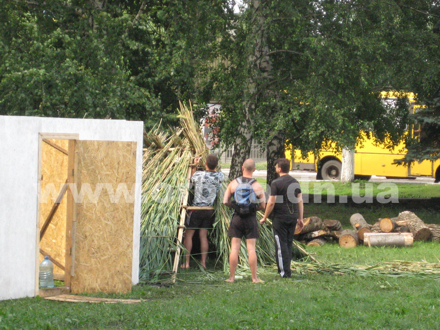 Участники этого грандиозного события выставляют палатки для будущих локаций, готовят декорации, устанавливают этнокафе на бульваре Андрющенко рядом с детской площадкой и сцену перед Дворцом Культуры ШУ «Покровское», а на административном здании на площади Шибанкова красуется вышиванка гигантских размеров.