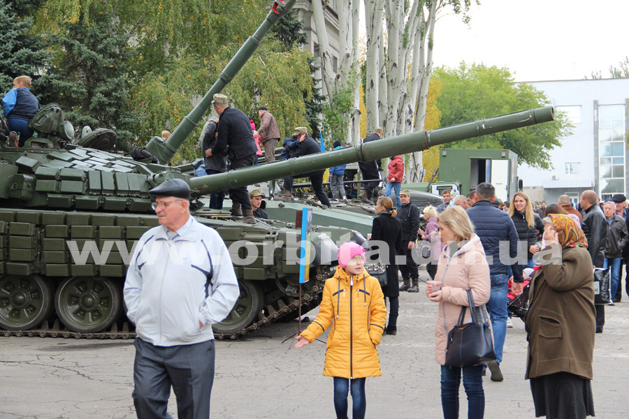 На площади Шибанкова выставлена военная техника: танк, самоходная артиллерийская установка «Гвоздика», боевая машина пехоты, система залпового огня «Град», зенитная установка и минометы.