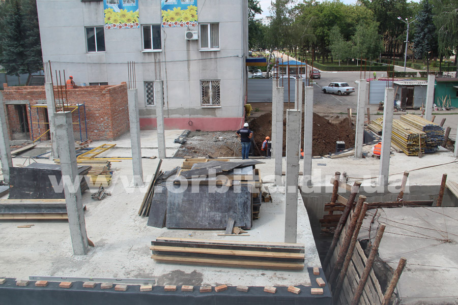 Руководитель субподрядной организации Антон Витушинский рассказал, что финансирование строительства производится своевременно, на объект поступают необходимые стройматериалы, основная часть которых была закуплена на сумму в 15 миллионов гривен еще в 2017 году.