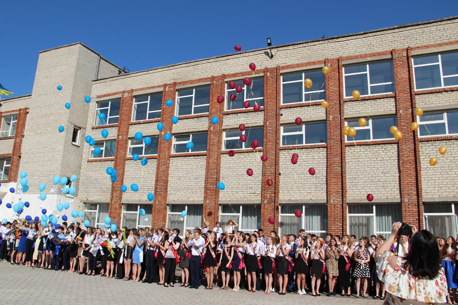 По традиции, все 9- и 11-классники выпустили разноцветные воздушные шары как символ прощания и добрых пожеланий.