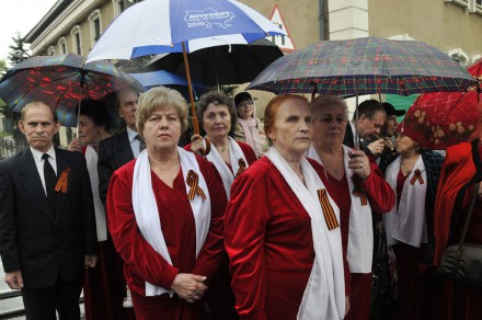 Здесь же, на площади перед собором, начался гала-концерт фестиваля “Созвучие победы”. Многочисленные выставки и конкурсы превратили ненастный, дождливый день в настоящий праздник Победы, христианской любви и единства.
