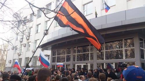 Они требуют освобождения так называемого “народного губернатора” Павла Губарева, арестованного судом на 2 месяца по подозрению в организации массовых беспорядков и сепаратизме.