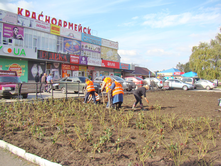 Сегодня на клумбе перед универмагом «Красноармейск» в Покровске работники коммунального предприятия «Управление городского хозяйства» занимались высадкой саженцев роз. Это не единственное место, которое в ближайшее время займет «королева всех цветов».
