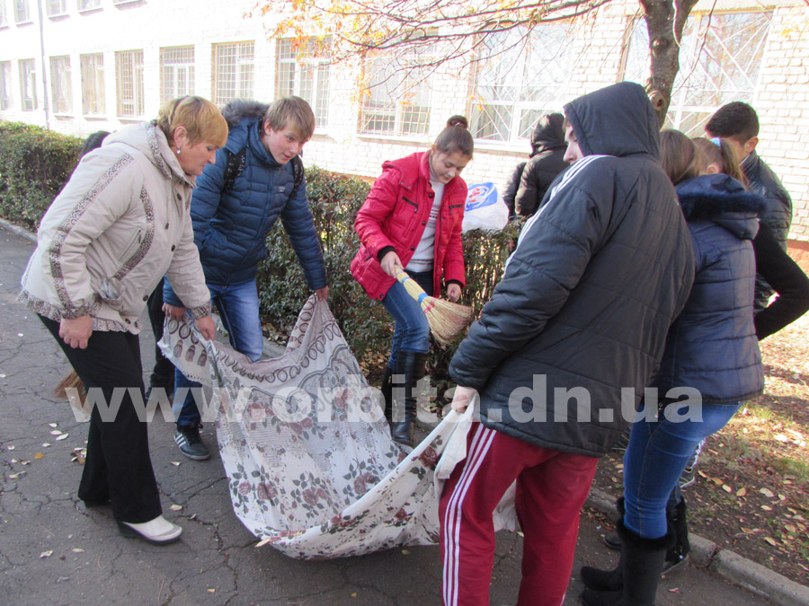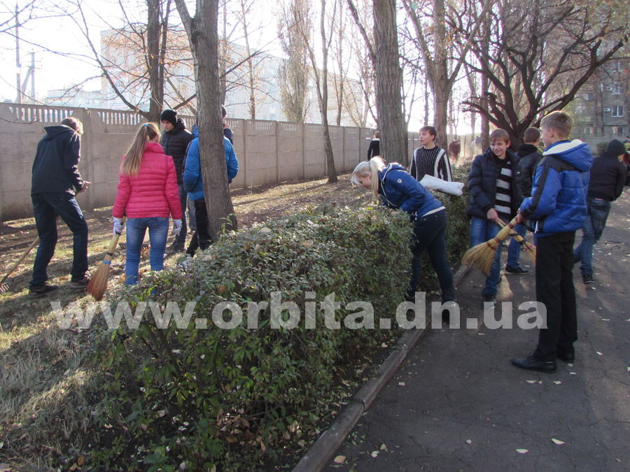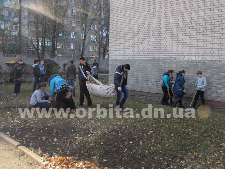 Съемочная группа ТК «Орбита» побывала в ОШ №9, старшеклассники которой также присоединились к мероприятию. Они убирали опавшие листья и подметали школьный двор.
