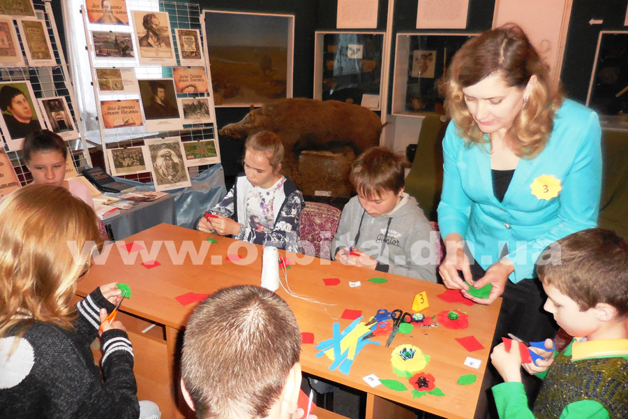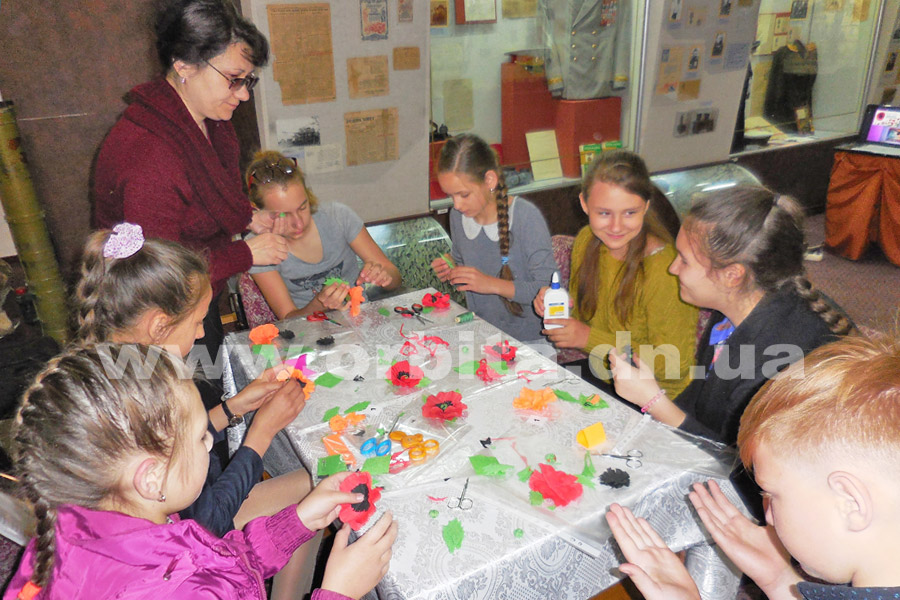 Сотрудники музея рассказали ребятам о вкладе украинского народа в победу Антигитлеровской коалиции во Второй мировой войне. Дети также узнали интересную легенду о цветке мака, с помощью которого сегодня выражается уважение всем борцам с нацизмом. А после приступили к его изготовлению под руководством опытных мастеров – руководителей кружков Центра творчества и досуга Галины Засядьвовк, Елены Белкиной, Татьяны Коноваловой и младшего научного сотрудника Оксаны Фоменко.