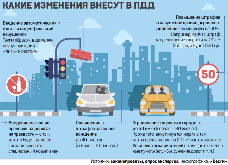 Также могут повысить уже существующие штрафы за нарушение правил дорожного движения. Глава МВД назвал их жесткими. В ведомстве говорят, что хотят поднять штрафы как минимум на 30%. То есть если сейчас за нарушение правил обгона грозит 425 грн, то будет 552 грн. А нынешние 510 грн за превышение скорости на 50 км/ч станут 705 грн.