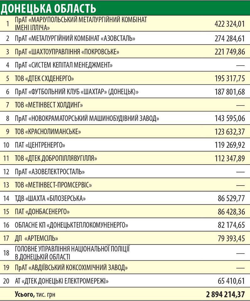 ПрАТ «Шахтоуправління «Покровське» посіло третю сходинку у ТОП-20 найбільших платників податків у Донецькій області за перше півріччя 2019 року. Про це повідомляє «Вісник. Офіційно про податки» на сторінці у Фейсбуці.