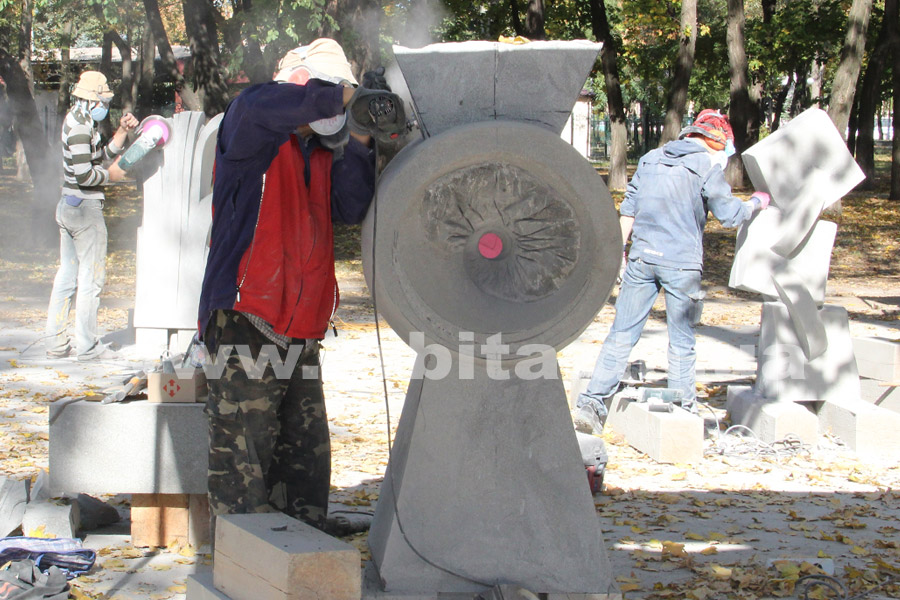 Третью неделю подряд в сквере «Соборный» Покровска прямо под открытым небом рождаются уникальные фигуры из гранита. Над их созданием трудятся восемь скульпторов из Украины, Беларуси и Греции – участники первого Международного симпозиума «Музыка города».