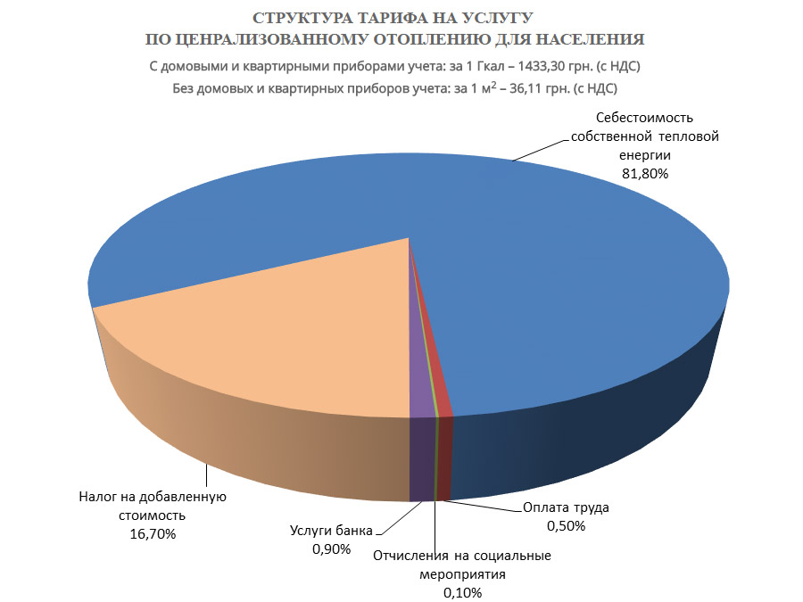 Как сообщается на сайте областного коммунального предприятия «Донецктеплокоммунэнерго», тариф для населения с 1 июля составляет 1433,3 гривни за гигакалорию. Для жителей домов без приборов учета услуги теплоснабжения стоят 36,11 гривни за квадратный метр.
