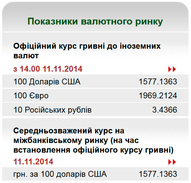 Согласно информации, обнародованной на сайте НБУ, сегодня официальный курс гривни составляет 15,77 грн. за доллар США, 19,69 грн. за евро и 3,44 грн. за 10 российских рублей.