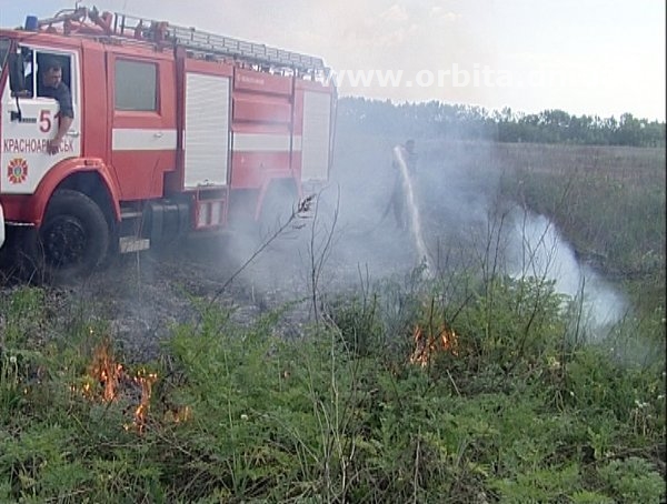 Неподалеку от газовой и бензиновой автозаправок, расположенных на въезде в Димитров, на поле загорелась сухая трава. О том, что огонь распространяется с большой скоростью, очевидцы сообщили работникам 9-го Государственного пожарно-спасательного отряда Красноармейска. Огнеборцы оперативно прибыли на место происшествия и за довольно короткое время локализовали пожар.