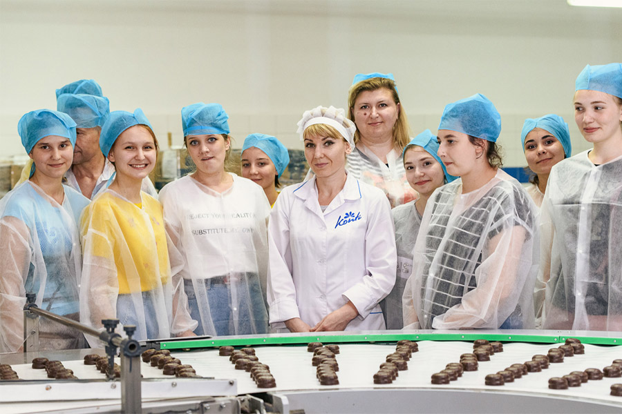 Затем ребята вернулись в родной город, чтобы посетить предприятие кондитерской промышленности ПО «Конти». На этот раз студентам медицинского колледжа показали работу бисквитного и десертного цехов, где производились десерты «Бонжур» и вафельные многослойные конфеты «Джек». Эти лакомства ребята пробовали много раз, но лишь во время экскурсионной поездки смогли увидеть, как они изготавливаются. Прямо в цехах гости продегустировали кондитерские изделия.