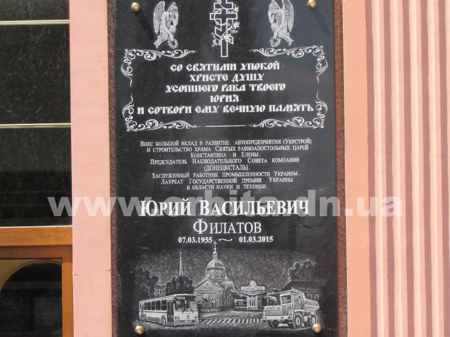 В свое время Юрий Филатов выступил инициатором строительства храма в честь святых равноапостольных царя Константина и матери его Елены на территории ЧАО «Покровское автотранспортное предприятие «Укрстрой». Через год после смерти Юрия Васильевича, 3 марта 2016 года, Митрополит Донецкий и Мариупольский Иларион совершил освящение мемориальной доски, установленной в «Укрстрое» в его честь.