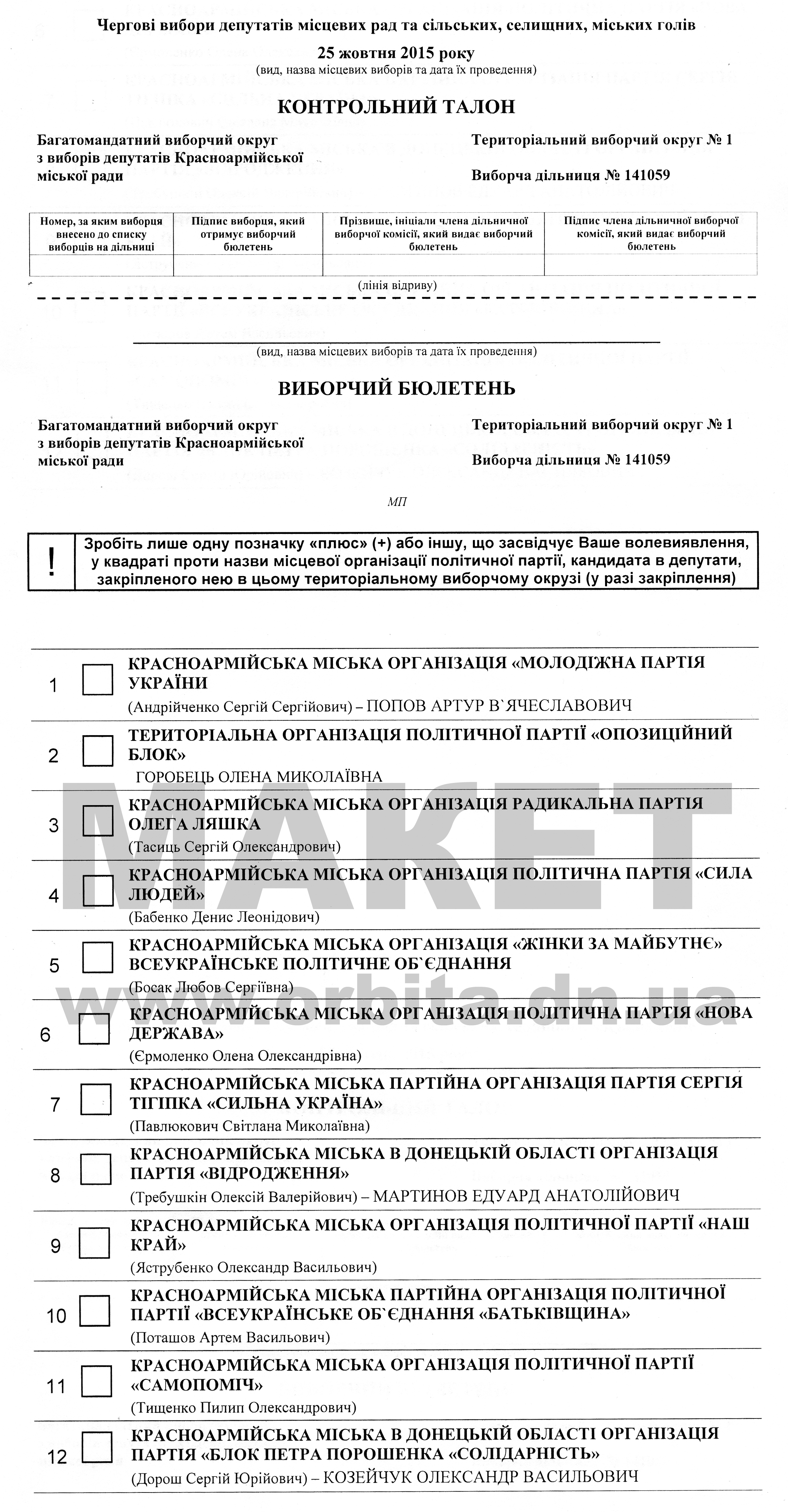 Макет бюллетеня для голосования за кандидатов на пост Красноармейского городского головы
