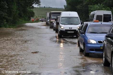В результате сильных дождей и разлива реки Кучук-Курасу ограничен проезд по трассе Симферополь – Феодосия в Крыму. Потоп в Белогорском районе создал пробку на трассе.