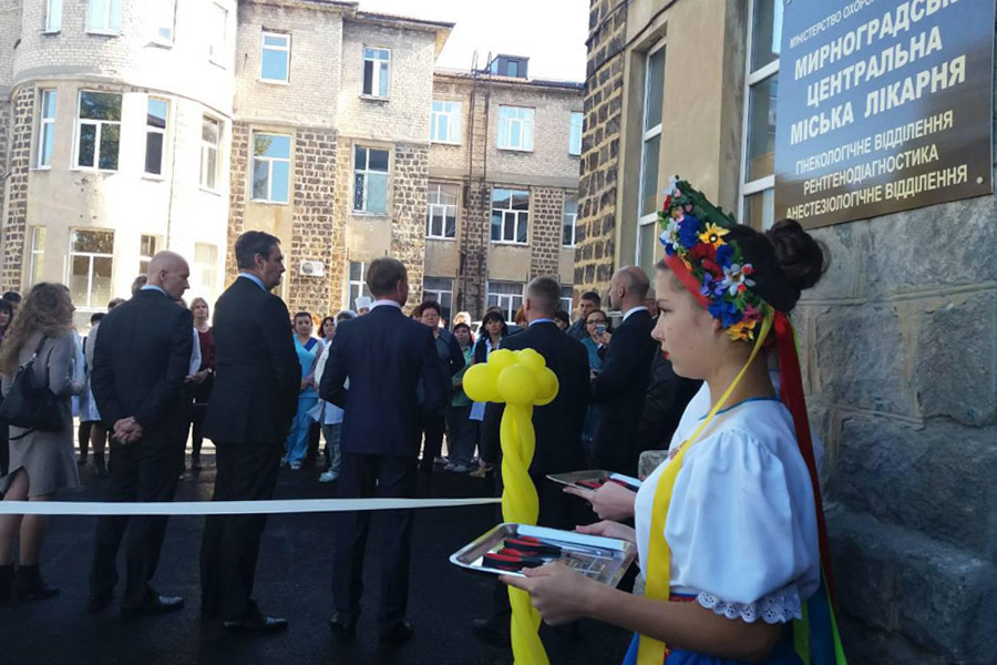 Міський голова Олександр Брикалов звернувся до присутніх: «Завдяки плідній співпраці міста Мирноград з Європейським інвестиційним банком, Мінрегіоном, Донецькою облдержадміністрацією, обласною військово-цивільної адміністрацією та ПРООН мешканці нашого міста отримають більш якісне медичне обслуговування, що є дуже важливим кроком на шляху реформування української медицини. Це черговий крок до європейського суспільства в Україні».