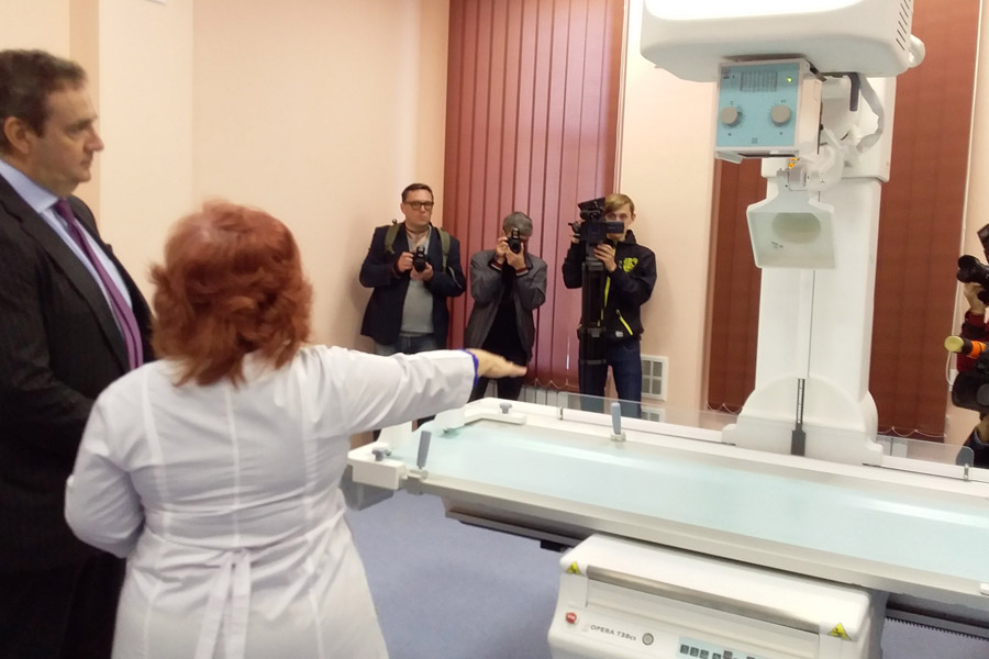 Почесні гості перерізали святкову стрічку на честь цієї урочистої події, а у приміщенні рентген-кабінету лікар-рентгенолог Людмила Низьковолосова провела екскурсію та презентувала рентген-апарат.
