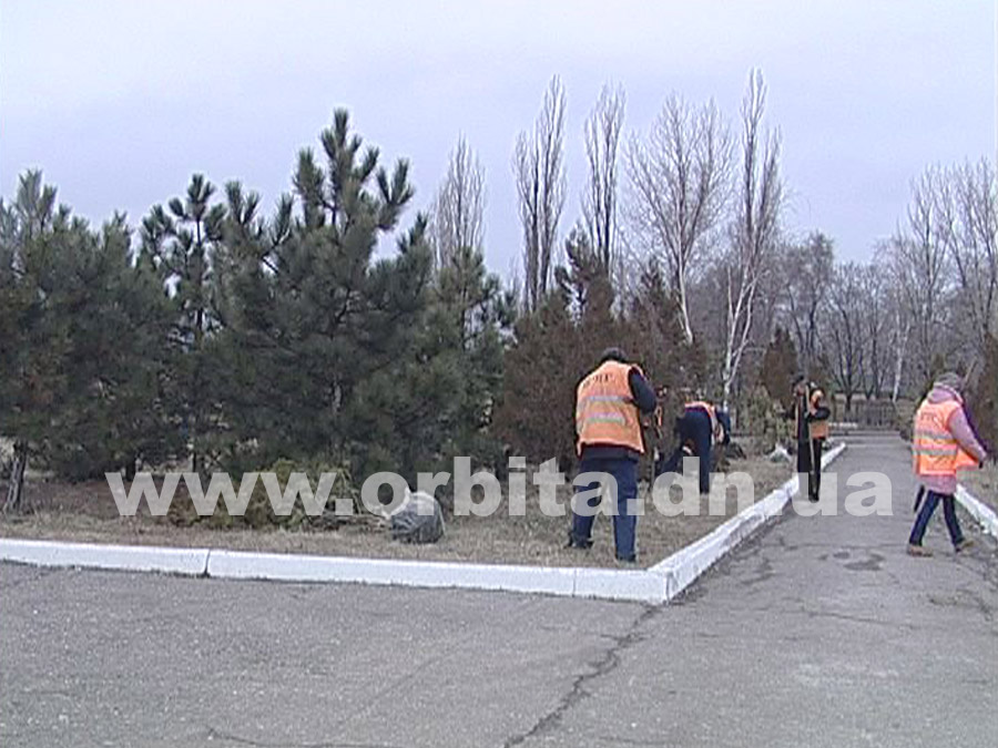 У мемориала погибшим воинам микрорайоне «Южный» г. Красноармейска работники Управления городского хозяйства высаживают туи.