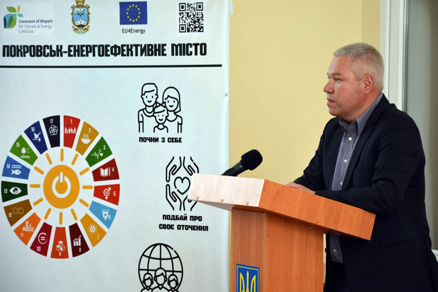 Директор КП «Покровськтепломережа» Дмитро Гордієнко зазначив про важливість системного підходу в питаннях ефективності використання енергоресурсів та захисту клімату в Україні і, зокрема, в місті Покровську.