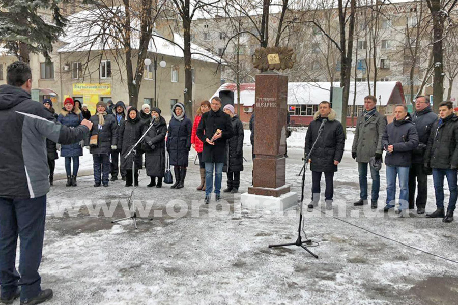Зменшену копію пам’ятника міський голова Покровська Руслан Требушкін передав голові журі конкурсу хорів Анатолію Солов’яненку, який у свою чергу обіцяв передати статуетку переможцю конкурсу завтра у Краматорську під час гала-концерту.