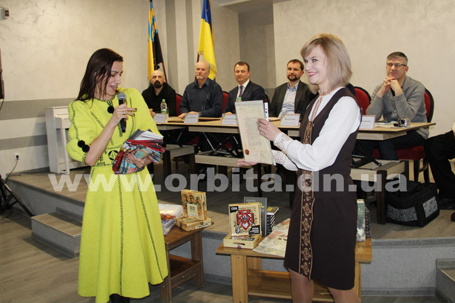 Ведуча Наталія Соколенко вручила директору Покровського історичного музею цінні подарунки від Національного музею історії України. Серед нових експонатів – копія Універсалу про злуку України 100-річної давнини, друковані видання, копії українських та козацьких прапорів.