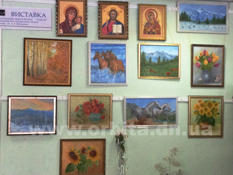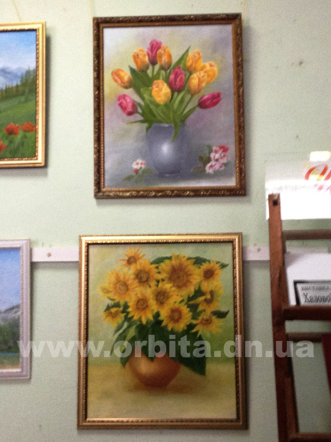 Всего на выставке было представлено порядка 12 картин, среди которых можно увидеть лики святых, написанные маслом, пейзажи и цветы.