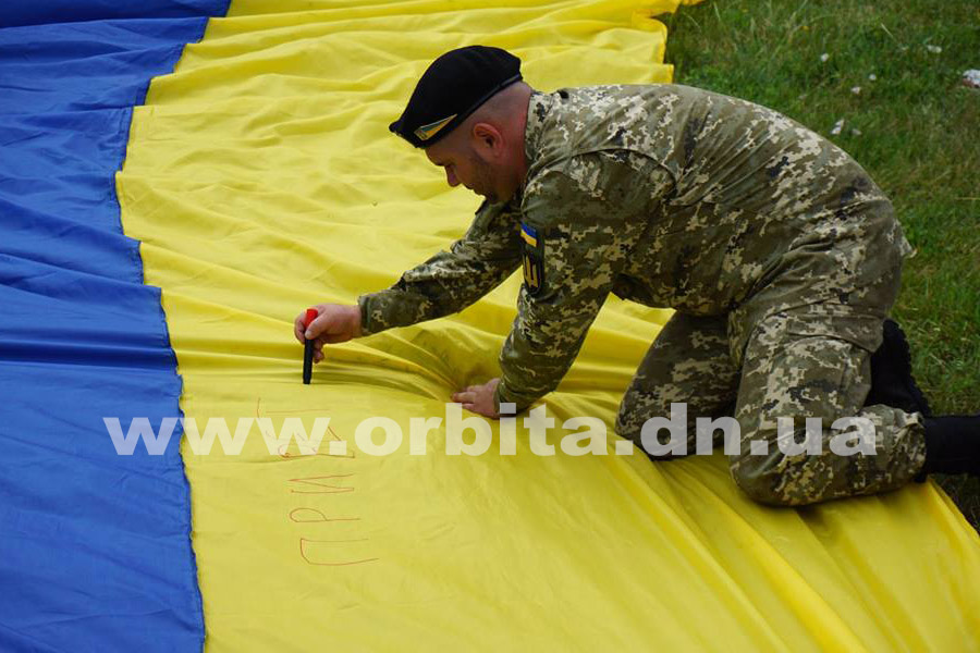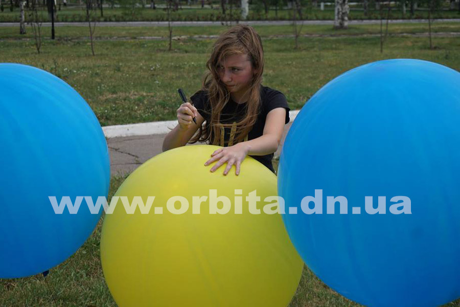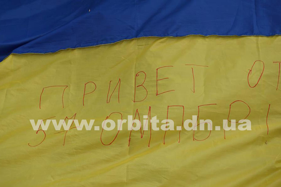 Перед запуском флага в сторону позиций ВСУ патриоты написали на шарах и самом полотне надписи-послания и пожелания, в частности: «Покровск – это Украина», «Все буде добре», «Україна – єдина».