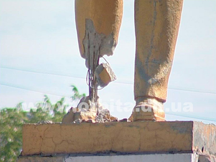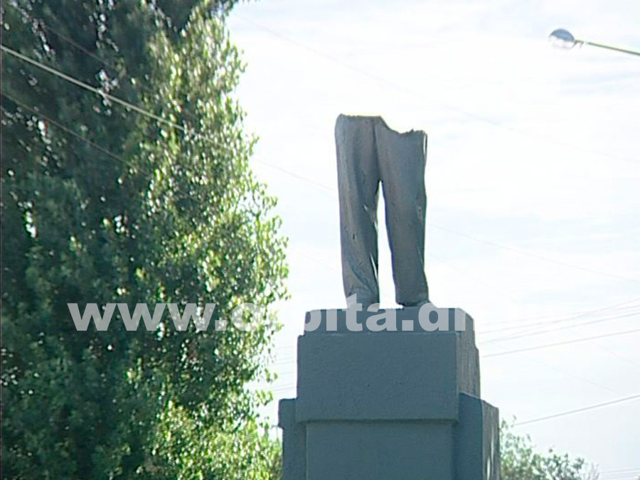 В районе шахты имени Димитрова от фигуры Ленина осталась только нижняя часть.