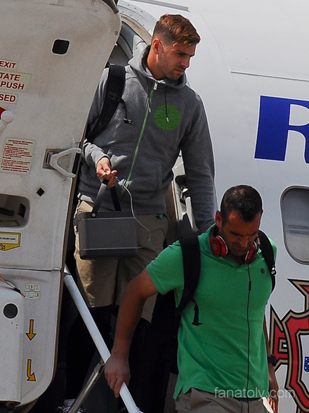 У трапа сборную Португалии встретил мэр Донецка Александр Лукьянченко и девушки в украинской национальной одежде.