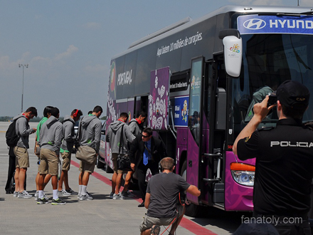 На выезде из аэропорта автобус с командой встречали донецкие болельщики сборной Португалии.