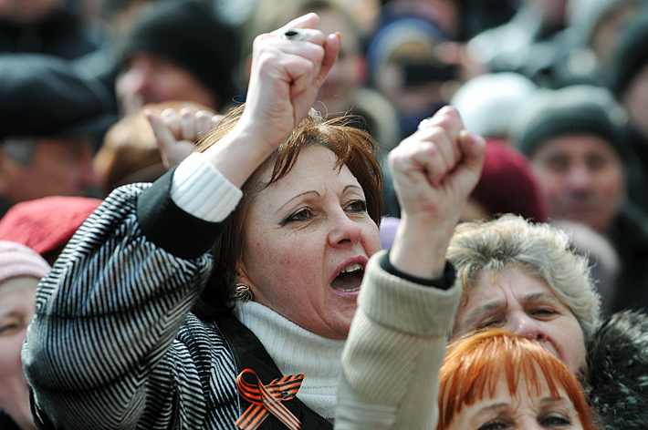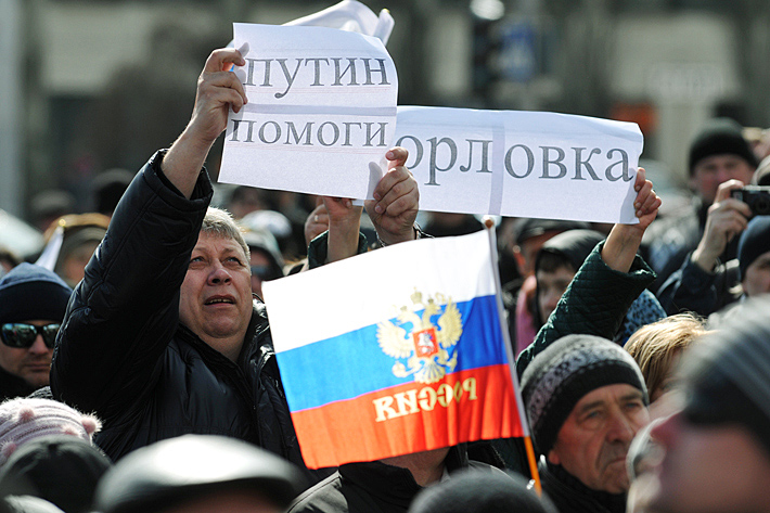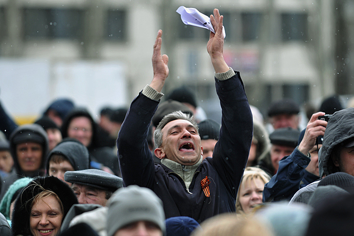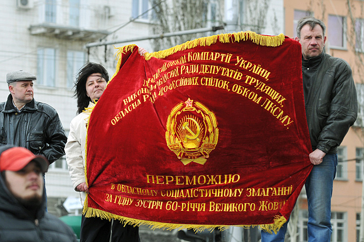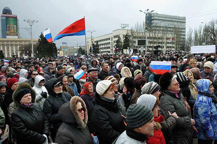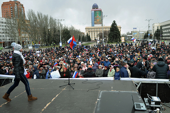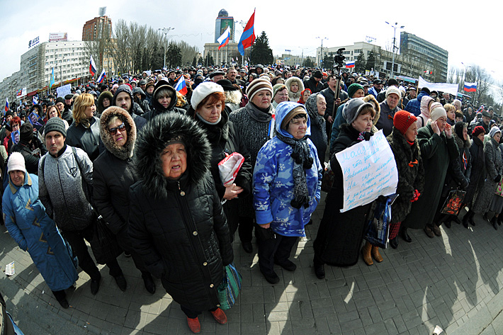 Сегодня, 29 марта, в Донецке на площади Ленина прошел очередной митинг под российскими флагами.
