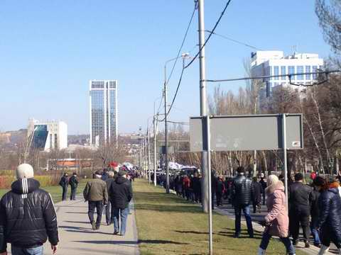 Как сообщает корреспондент “ОстроВа”, первоначально многие считали, что организаторы митинга традиционно ведут их пикетировать Донецкий областной совет/областную государственную администрацию. Однако колона мирно прошла мимо. Так же спокойно митингующие проследовали мимо Донецкого городского совета.
