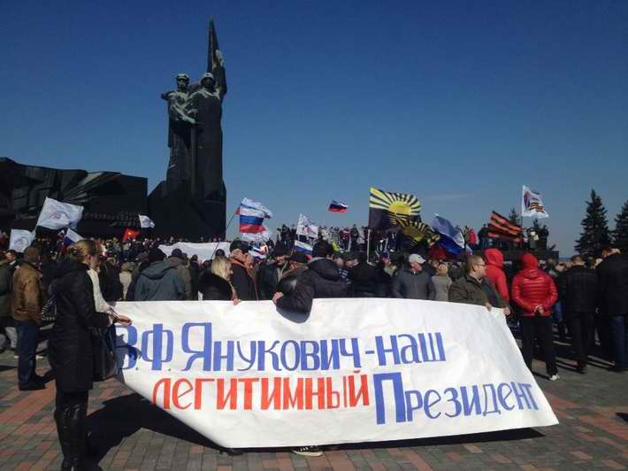 Главный лейтмотив митинга – требование провести референдум о статусе Донецкой области с перспективой присоединения ее к РФ.