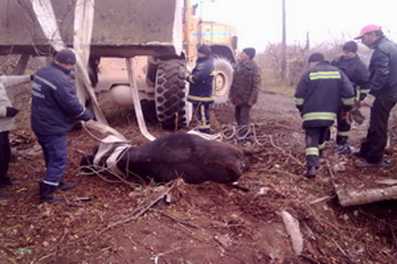 Накануне в Дружковке к спасателям 45-й Государственной пожарно-спасательной части обратились местные жители с просьбой освободить корову, которая упала в 5-метровый колодец.