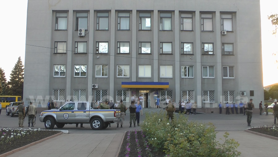 Вооруженные люди расположились в административном здании на площади Шибанкова (бывший горком партии).