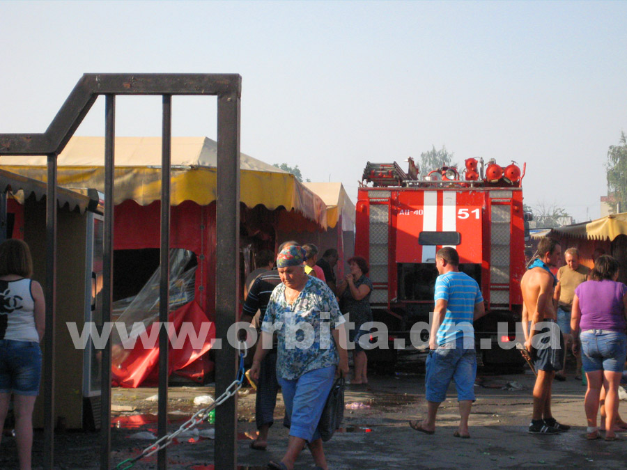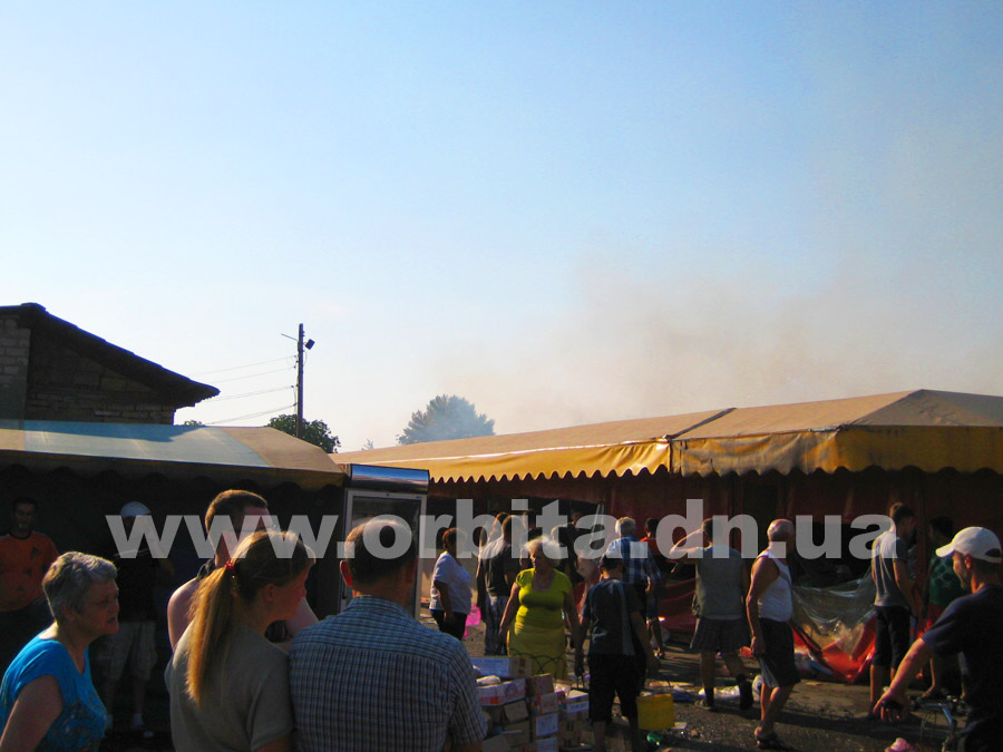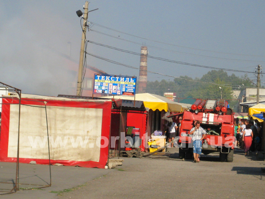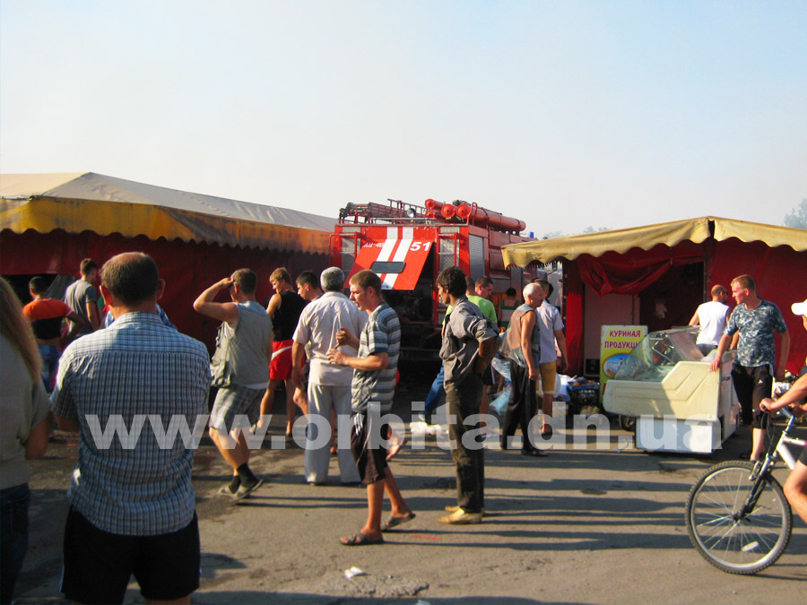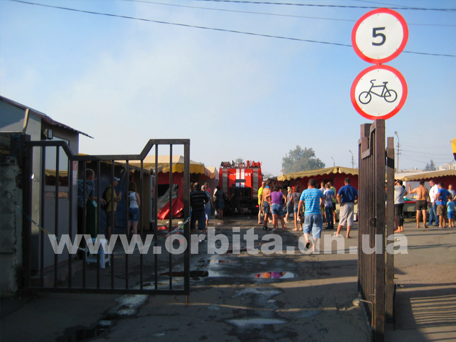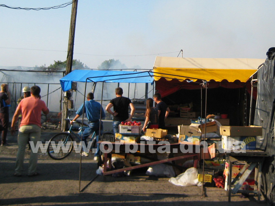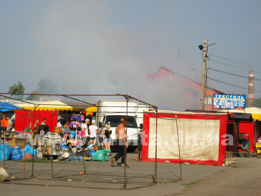 Прибыв на место, нам удалось выяснить, что горят два ряда торговых мест с южной стороны рынка. По словам очевидцев, возгорание началось в одной из торговых точек в центре ряда. Далее огонь распространился на соседние торговые палатки.