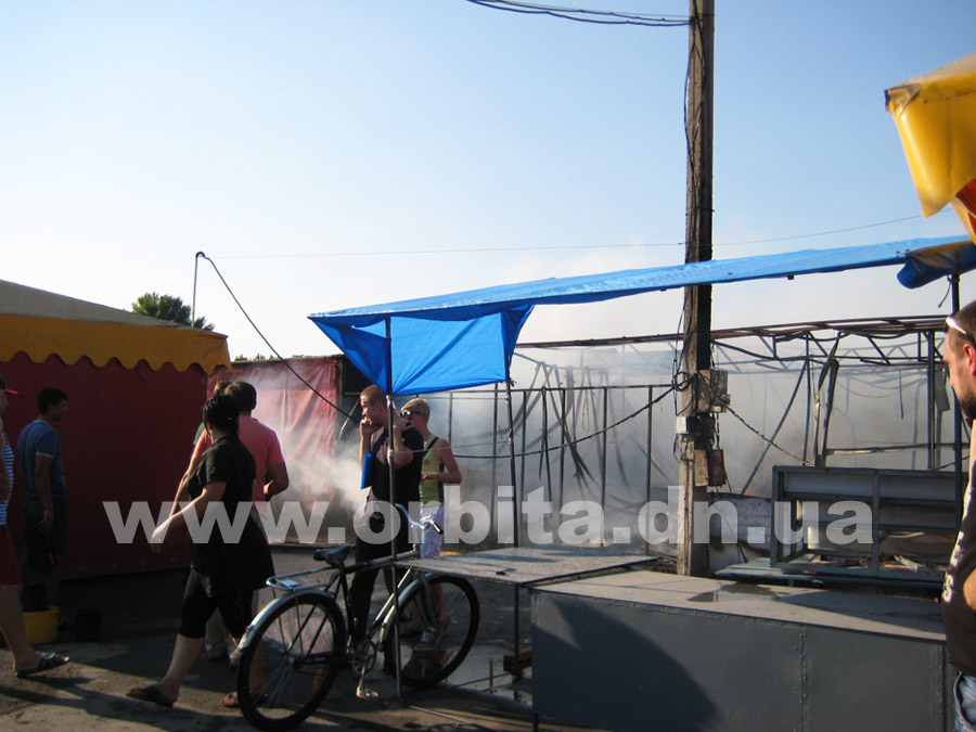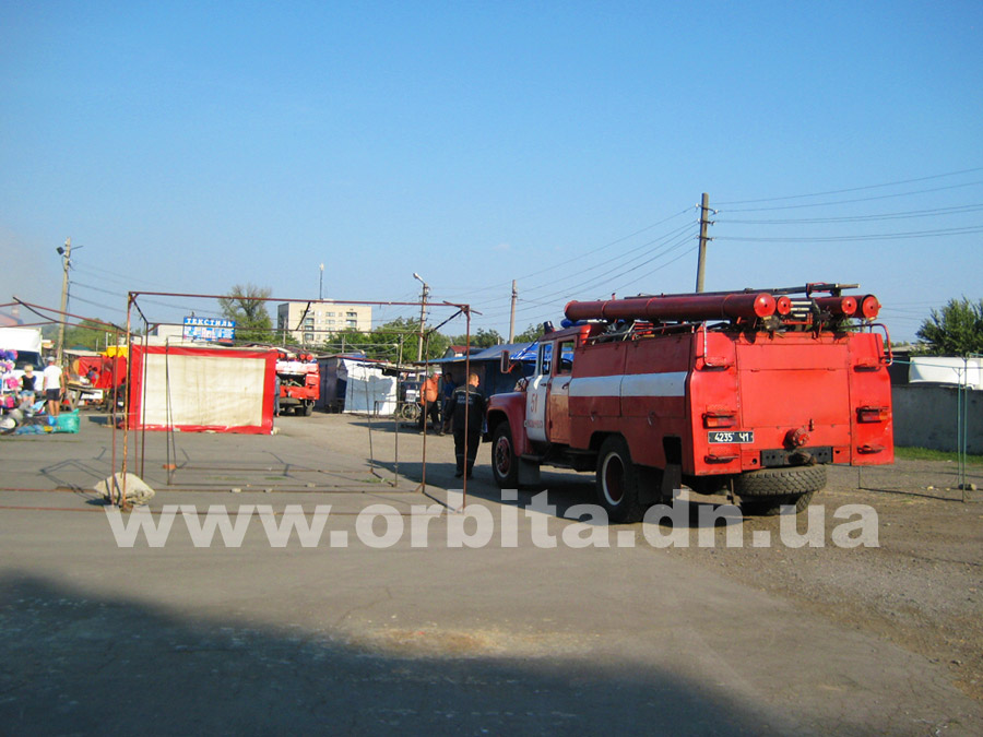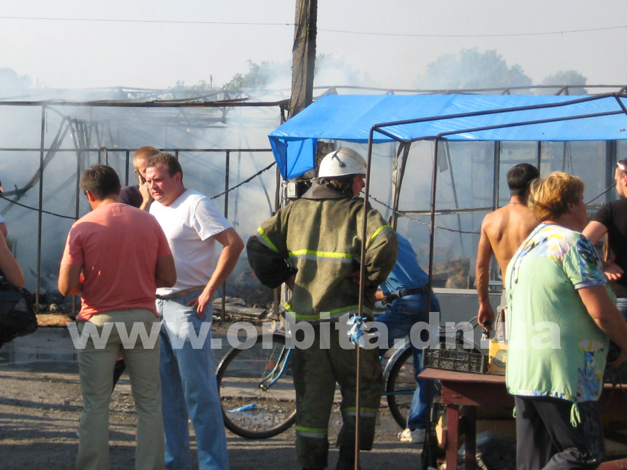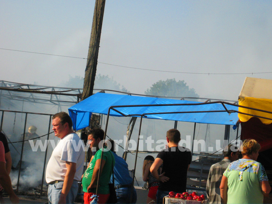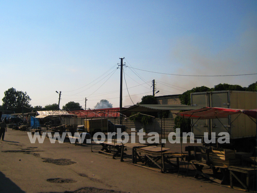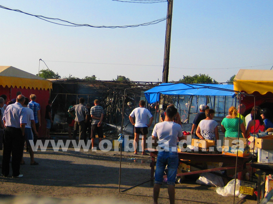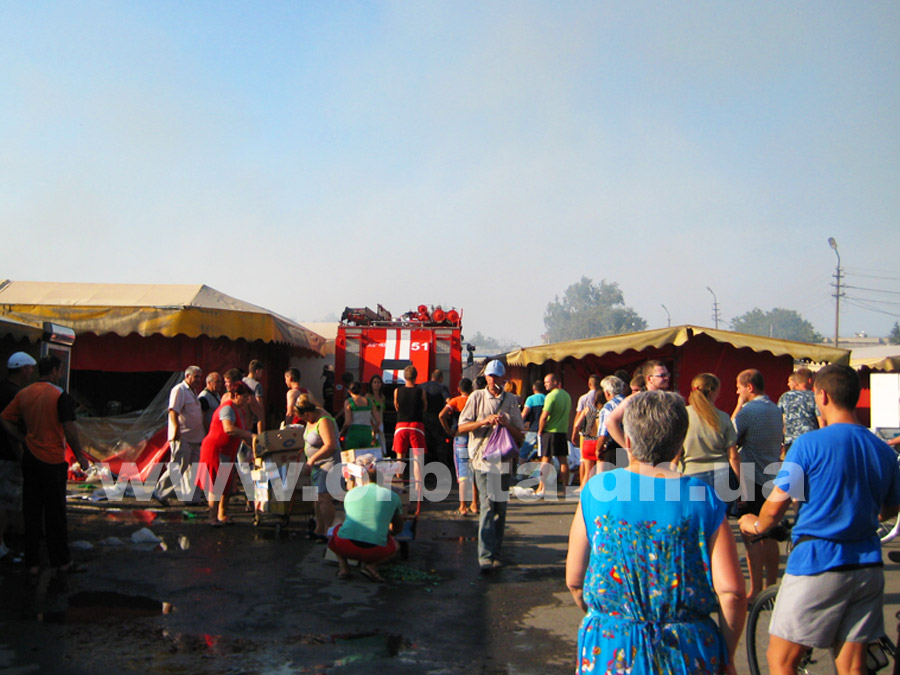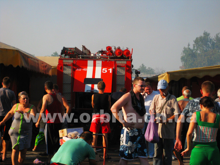 Прибыв на место, нам удалось выяснить, что горят два ряда торговых мест с южной стороны рынка. По словам очевидцев, возгорание началось в одной из торговых точек в центре ряда. Далее огонь распространился на соседние торговые палатки.