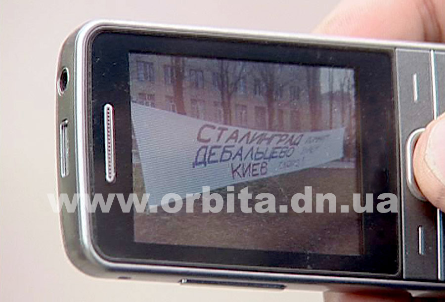 Сегодня утром на бульваре Андрющенко был обнаружен транспарант с надписью: «Сталинград помним, Дебальцево знаем, Киев скоро».