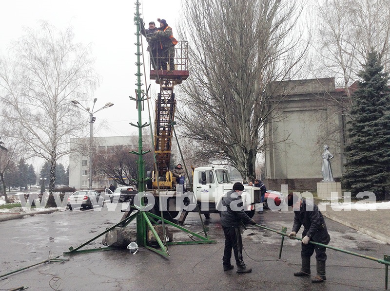Так, сегодня начали устанавливать главную ёлку Красноармейска. Монтажные работы проводятся на площади Шибанкова.
