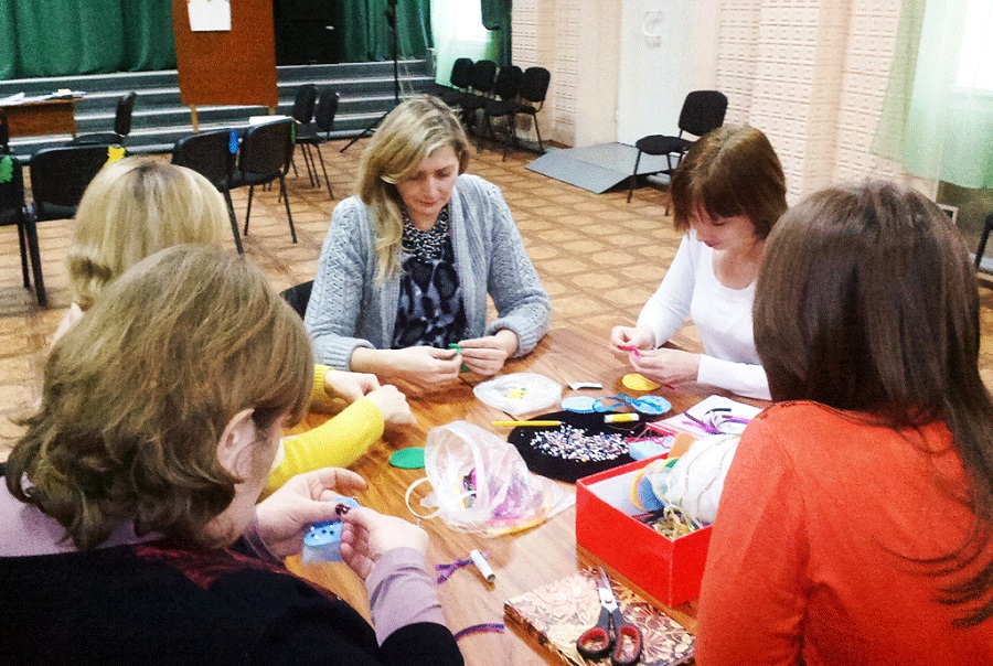 Первым праздничным днем работы Мастерской стало заседание творческой группы руководителей кружков. В рамках мероприятия прошло три мастер-класса для педагогов, каждый из которых был посвящен определенному виду игрушек. Гости имели возможность выбирать, какие именно новогодние украшения они хотят изготовить.