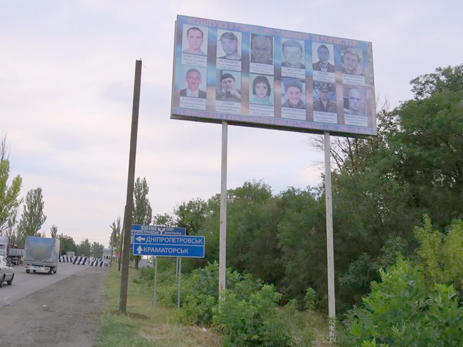 На въезде в город установили билборд, на котором размещены фотографии разыскиваемых активных участников незаконных вооруженных формирований. Об этом написал на своей странице в Facebook начальник Красноармейского ГО Виталий Боднарук.