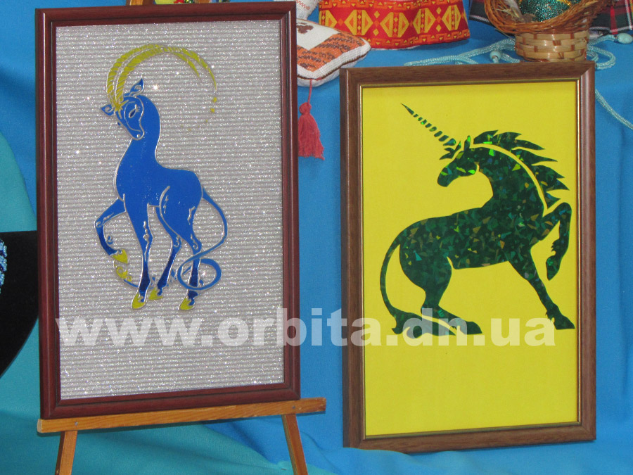 Выставка насчитывает более 50 экспонатов, выполненных в различных техниках: бисероплетение, вышивка, вытинанка, мотанка, витраж и флористика.
